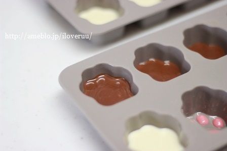 4:肉球と違う色のチョコレートを流し入れ、冷蔵庫で5分ほど冷やす。
