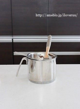 そして、湯銭の上に置いたらすぐに混ぜるのではなく、2~3分待つと勝手に溶けてるので、