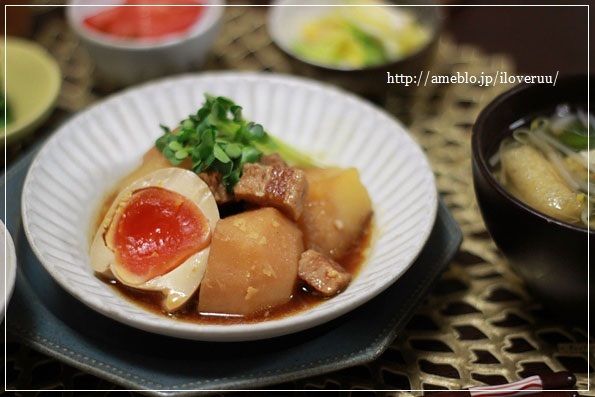 串がスッとささるくらいになったら火を止め、時間があればいったん冷まして、軽く温めた煮卵と盛りあわせて・・・と。