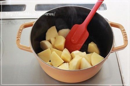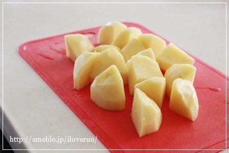 としましては、とりあえず、じゃがいもを大き目一口大くらいに切って、水にさらして。