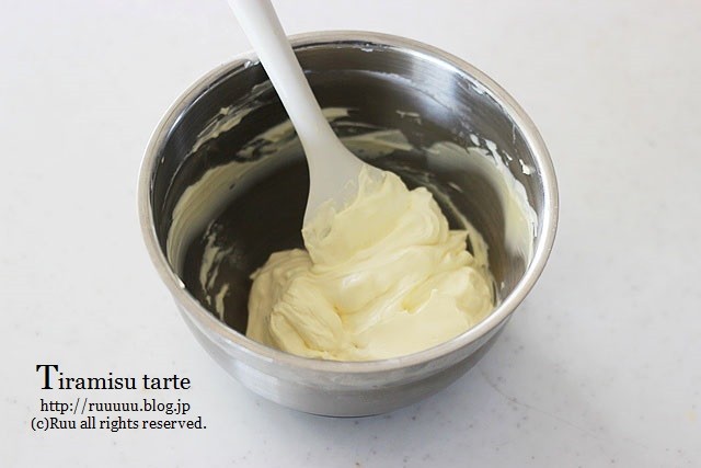 マスカルポーネは、湯煎やレンジにかけたりせず、常温で練りました。