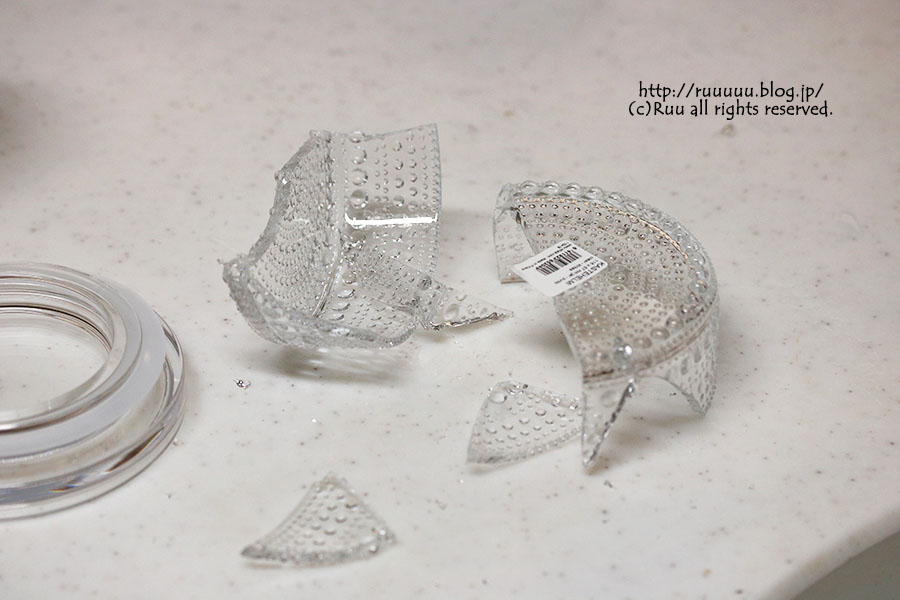どうせなくなるなら、割れたクリアの蓋にしてくれればいいものを、