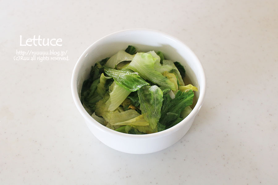 1:レタスは洗って水気を切り、適当にちぎる。