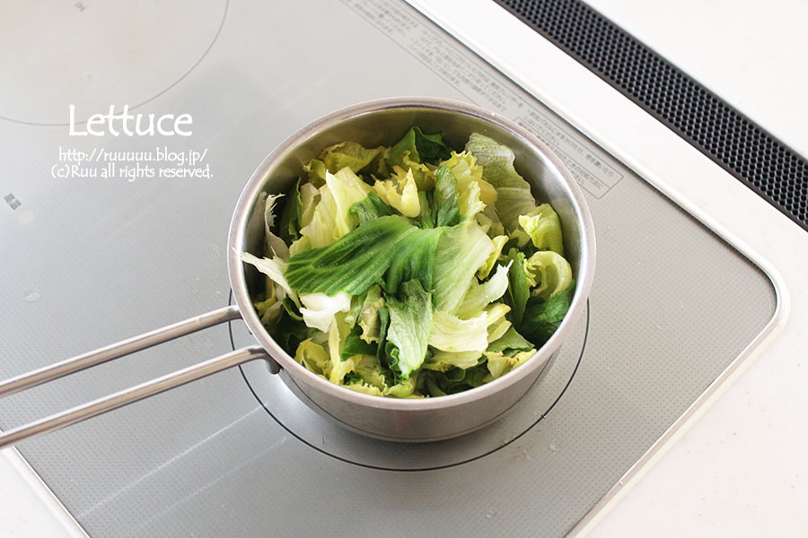 冷ます間に全体的に火が通り、レタスの水分がでるので、火にかける時間はほんのちょっとでOK。