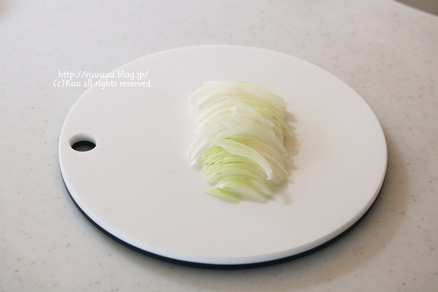 2:茹でている間に玉ねぎをスライスする。