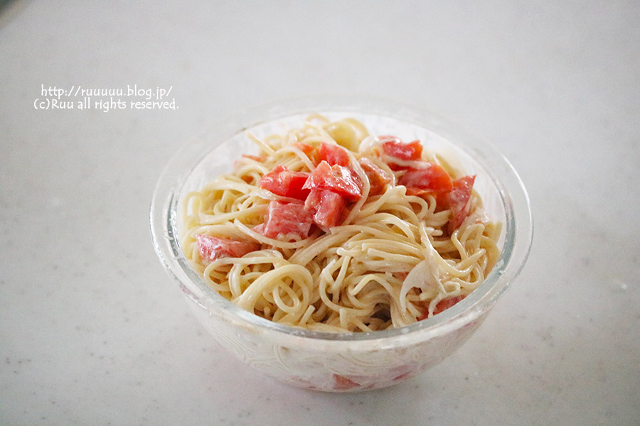 似たようなレシピはここ(→トマトと水菜のスパゲッティサラダ)にもあるんだけど、