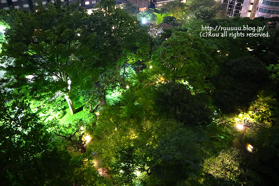 ひな「見て見てー、下にお庭が見えるー。ライトアップされてて超綺麗~♡」