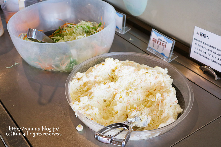 冷え冷えのサラダコーナーには、定番の千キャベツとポテサラ。