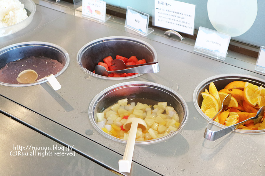 右から、オレンジ、杏仁豆腐、すいか、ゼリー。