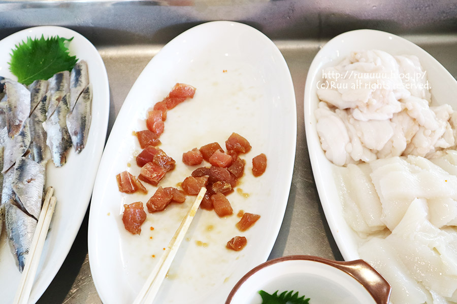 貝は人気なのか、見当たらず、魚とれんこんがゴロゴロしてました。