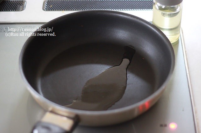6:フライパンにサラダ油を熱する。(←しっかり目に熱して)