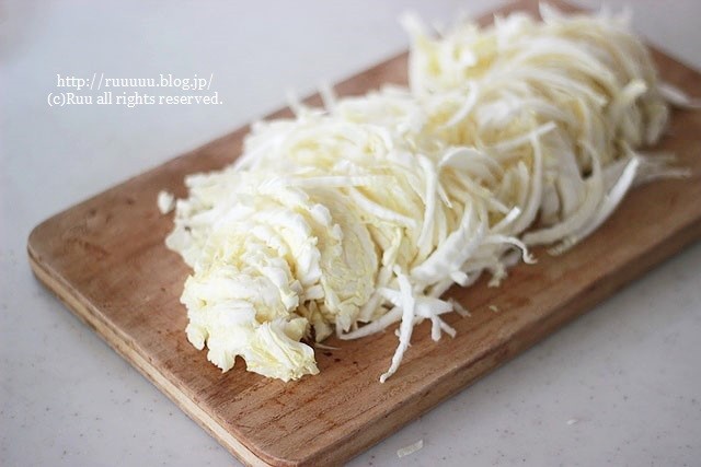 2:白菜は細切りにする。