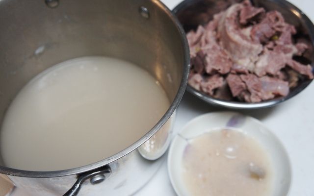 どて焼きが食べたくて・・・。牛筋を買いました。たっぷり1キロ分。どんだけ食うんじゃ。笑生の牛筋なので、まずは下処理。下処理。るん♪鍋に、いっぱいの水と軽く洗った牛筋を入れ、火にかけます。 強火でごうごうと。そうすると。鬼のように灰汁がでます。 すんごい分厚い