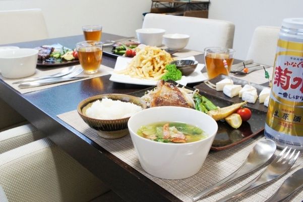 さぶろー山「ひゃっほーい!はるかちゃんおめでとー!!!」ひな「はるちゃんおめでとー!」おかん「おめでとー!おめでとー!おめでとー!」 極上ステーキ 焼きアスパラと焼き筍等々添え・レタスの食べるスープ・山盛りポテト・カマンベールチーズ昨日は、はるかの出産パー