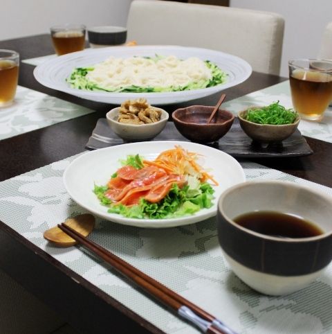 夏休み2日目。もとい。ラジオ体操2日目。奇跡的にも。今年は行けてます。 素麺・薬味三種・サーモンの中華マリネ・プリン今のところは。 明日の予定は未定です。見てのとーり。 素麺です。クソ暑かった昨日。あたしの喉を潤すのはこれしかない。と、思って作りました。ネ