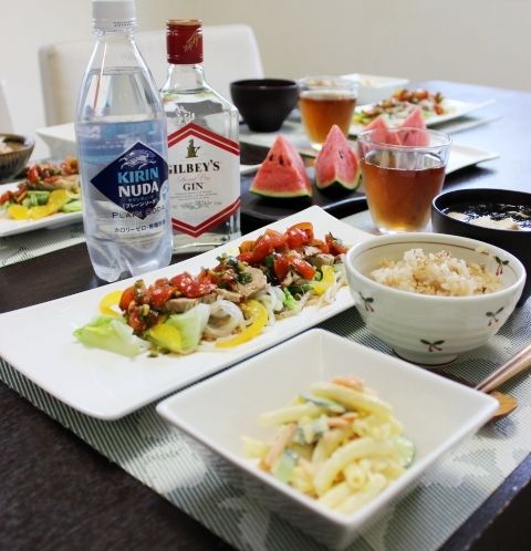 おはようございます。 お暑うございます。おかめでございます。今日もあっつーーーーーーーーーーーーーーーーーーーーーーーーーー茹で豚のニラトマソースがけ・マカロニサラダ・すいか・油揚げご飯・くずし豆腐と焼き海苔のお吸い物ーーーーーーーーーーーーーーーーーー