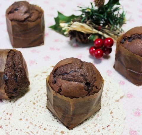 食べられないけど。焼きました。 Wチョコチップマフィンココア入りのビターなチョコレート生地に、たっぷりチョコチップ。大好きなんですけどね。ちょー大好きなんですけど。チョコチップは無理だよねー。っつー話。(多分すっぽりハマってしまうのではないかと・・・)でも