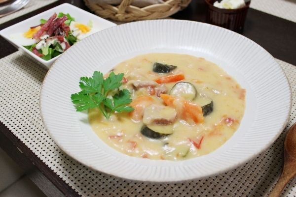 おこんばんは。おかめでございます。こちらは、「豆腐2丁」っつー、なんともふざけたお題の続きです。(豆腐の話はもうでてきません。)ほっかほかのトマト入りシチュー。 鶏肉とズッキーニのトマト入りシチュー■あゆみちゃんの好きなものランキング3位:パスタ (だ