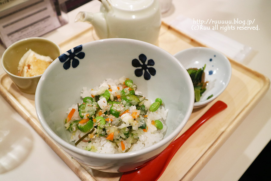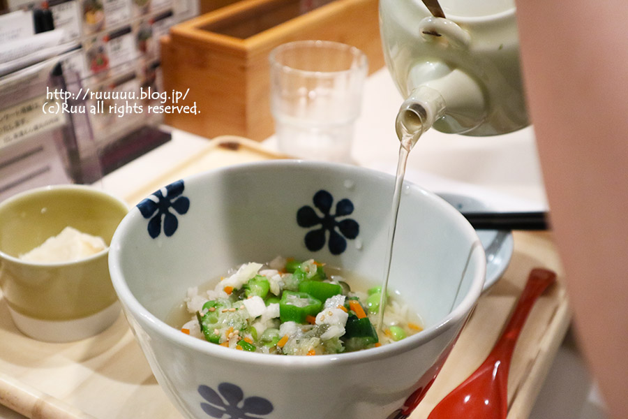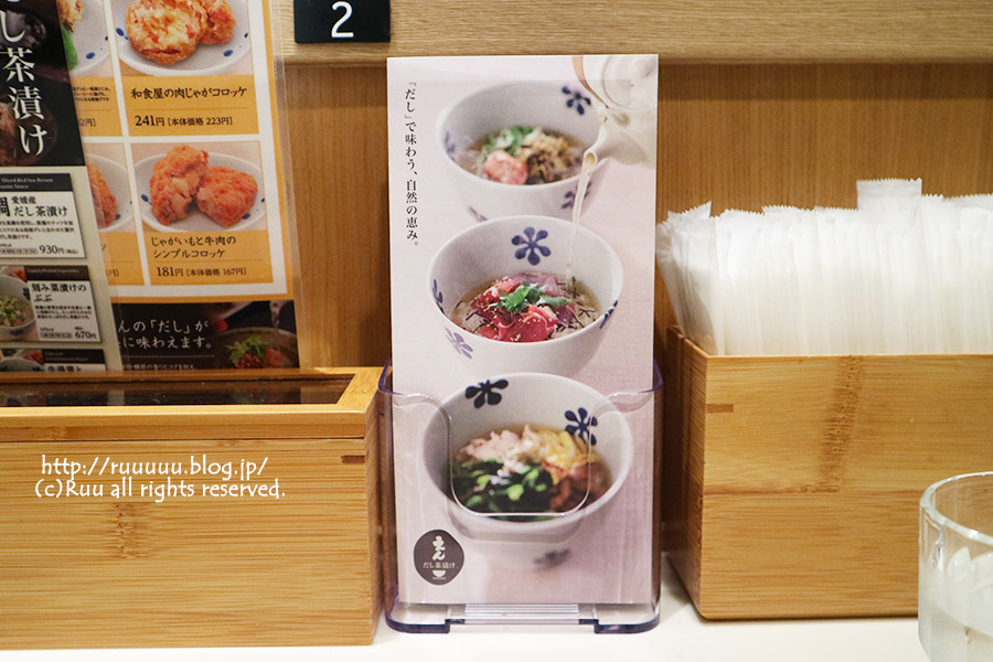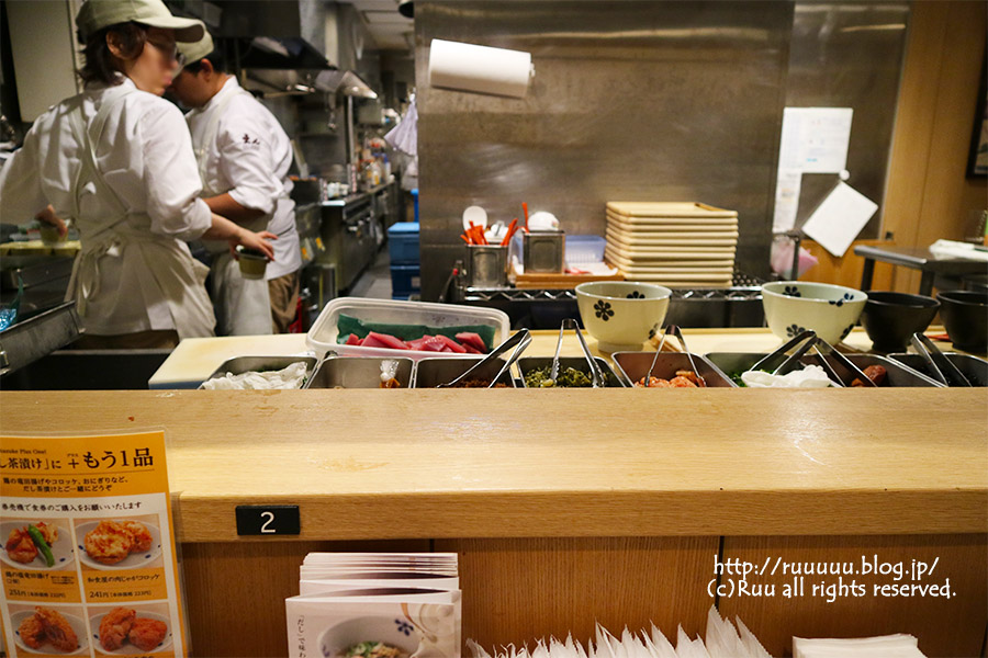 キッチンの中では、ご飯の重さを計って、用意された具をのせて、小鉢を添えて、はいどうぞ。的なスタイルでお茶漬けが作られるので、