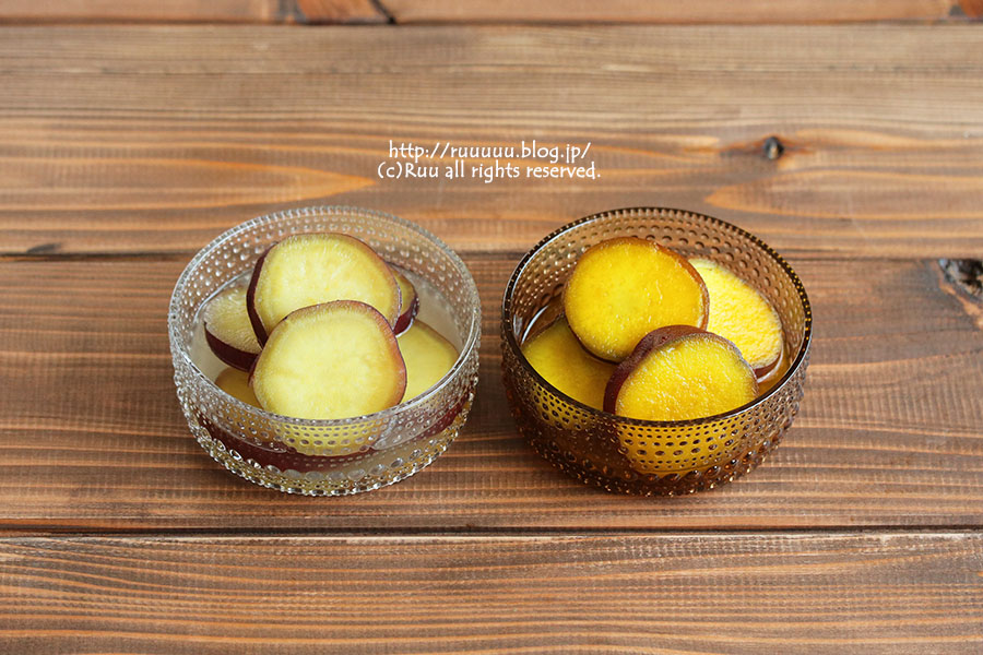P24からの「煮物の味染み」章より、さつまいもの甘露煮↓