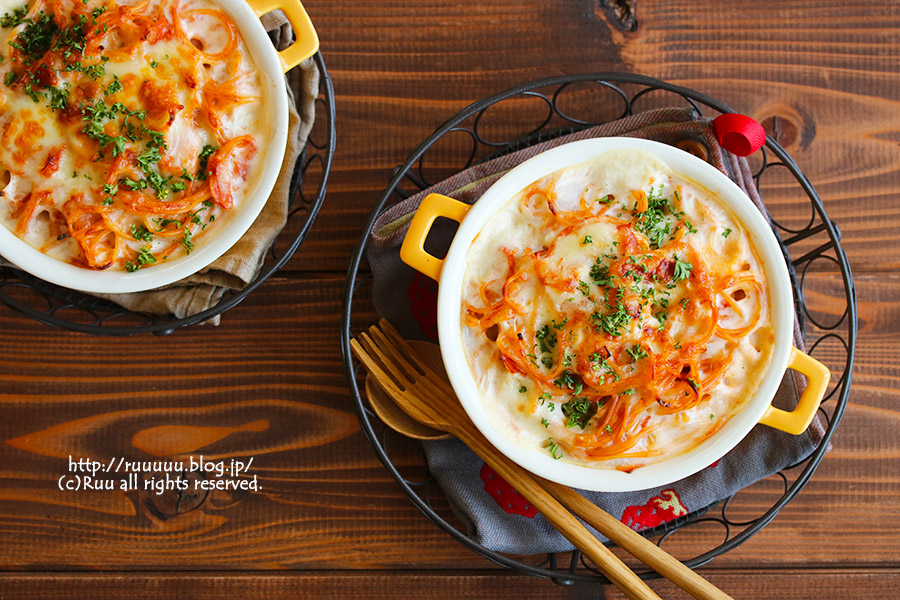 P32からの「オーブン、トースター、グリル」章から、スパゲッティグラタン↓