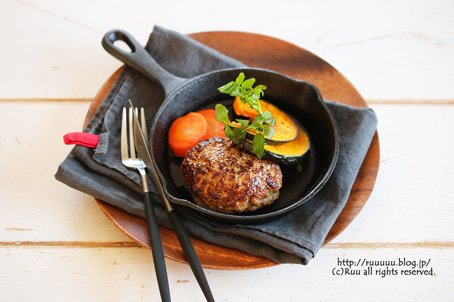 合い挽き肉で作るジューシーハンバーグステーキ↓