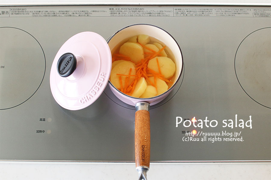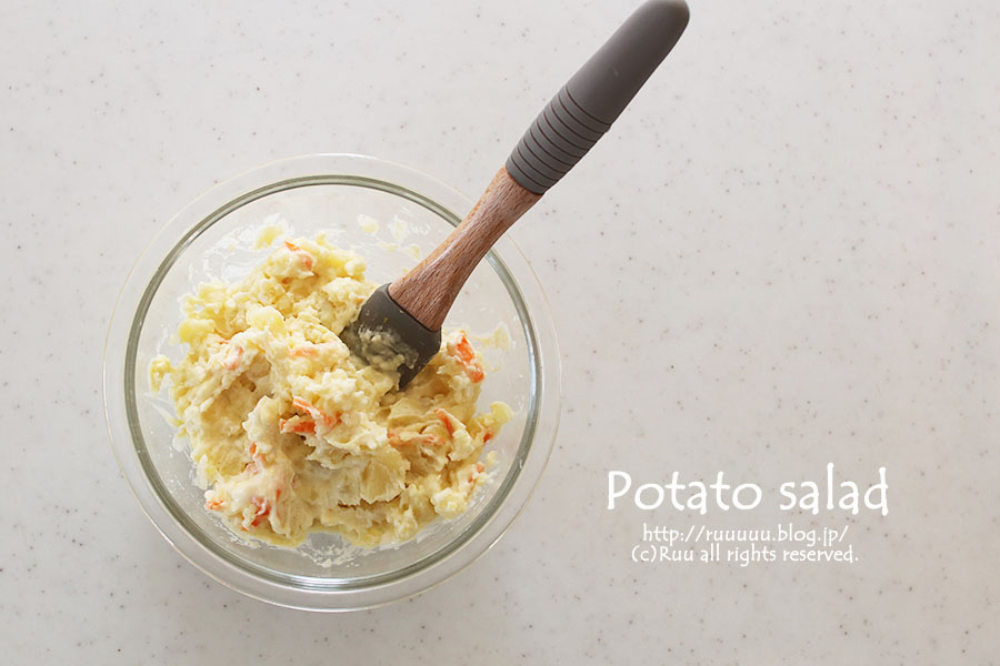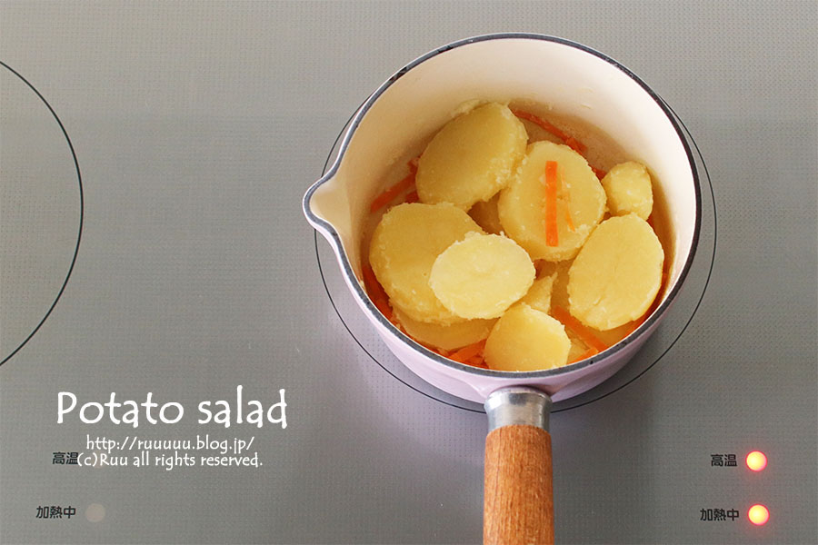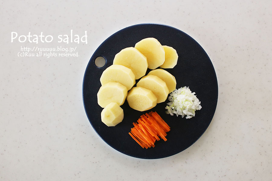 じゃがいも、玉ねぎ、人参の、3つしか入ってないポテサラですが、