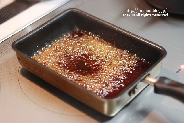 7:●印をフライパンに入れ、軽く煮詰め、ごま油を少々たらす。