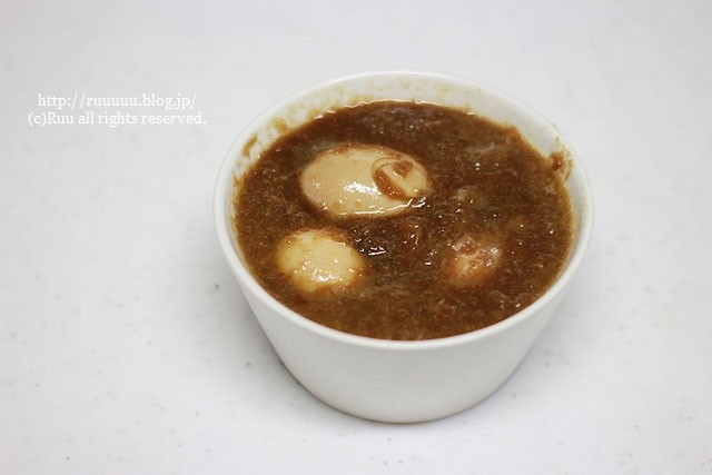 補足:煮卵は、温めるというより、周りについた脂が溶ければいいので、こんなんでも大丈夫です。