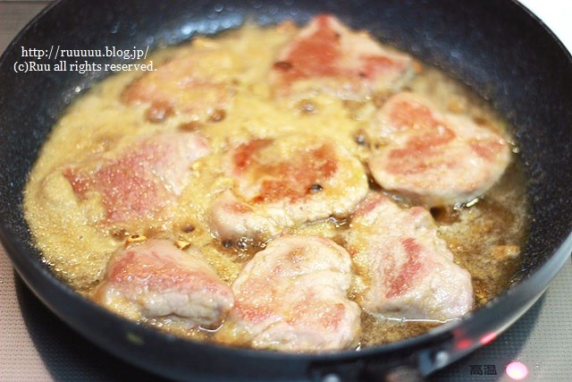 2:豚ヒレ肉は厚さ1cm程度のそぎ切りにし、軽く塩・胡椒をふる。