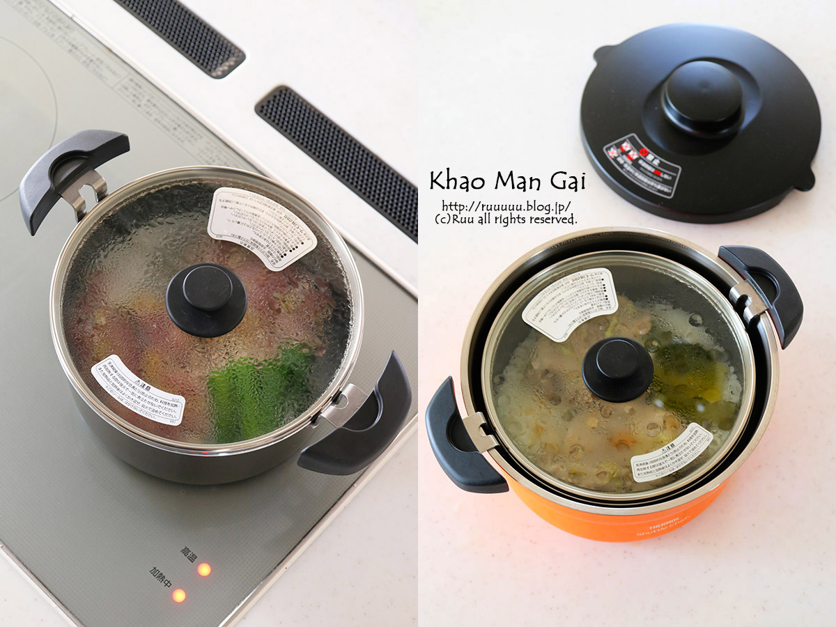 これは、お鍋と保温容器の2つを使う調理法。