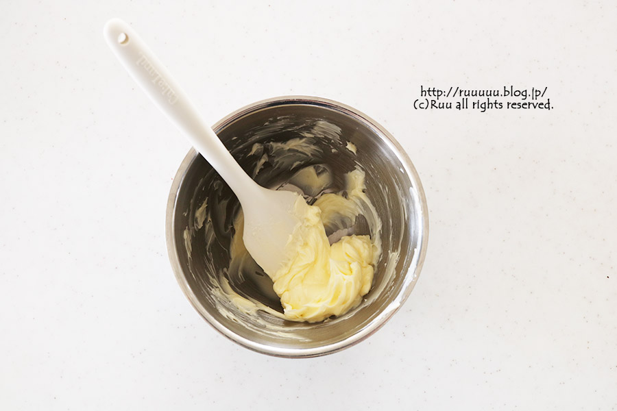 2:バターは室温に戻し、ゴムベラで練っておく。