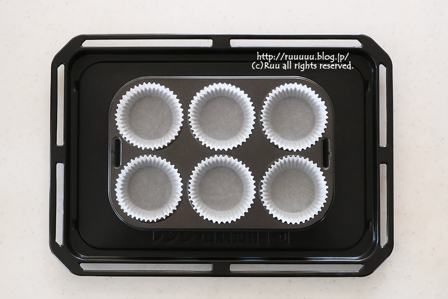 1:マフィンケースにグラシンケースをセットしておく。