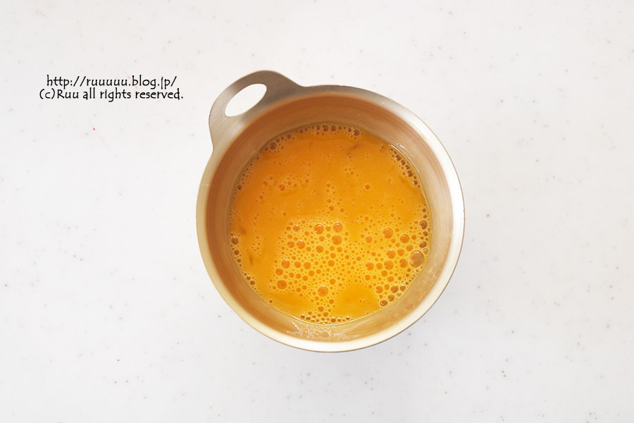 3:卵は室温に戻し、溶きほぐしておく。