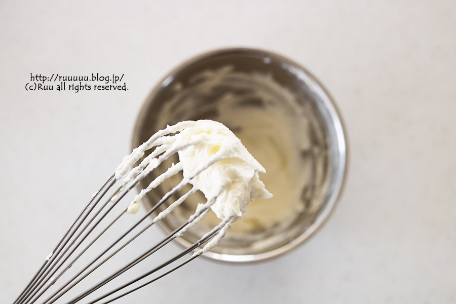 混ぜる時は、ゴムベラで大きく2~3回混ぜるだけ。