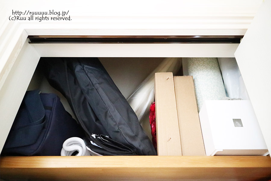 本当は2Fに収納したスーツケースに入れ子収納をしたほうがいいのは分かるんだけど、