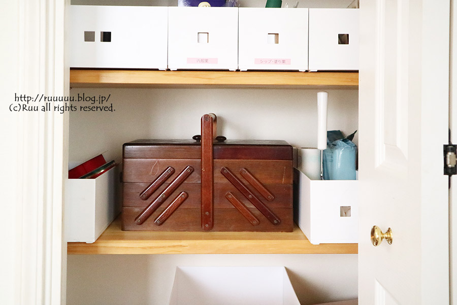 でも、離したくない&離れたくない裁縫箱などは腰の高さに。