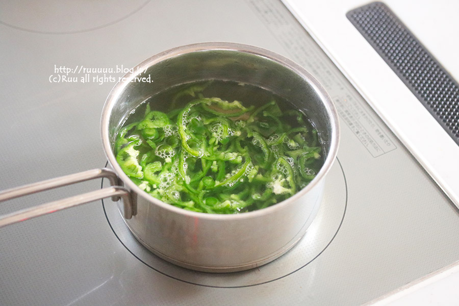 ぶっちゃけ、ピーマン自身の苦み問題は、次の工程だけでもだいぶ軽減されるので、