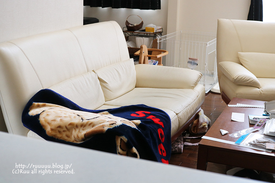 (ひどい時は、人はおろかチワワですら座れない我が家のソファ)