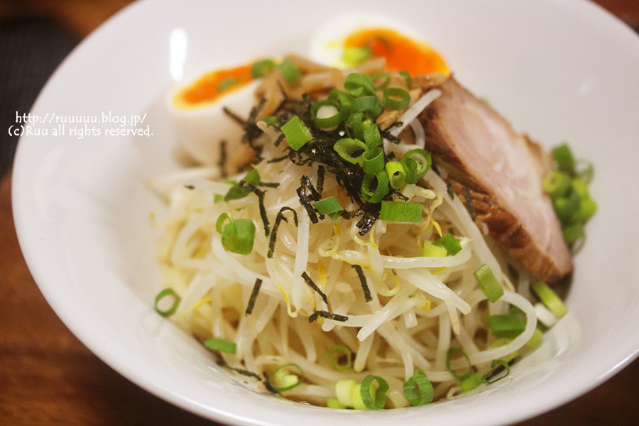 チャーシューはしばらく前に作って冷凍しといたヤツを解凍してすこし厚めのカットで。