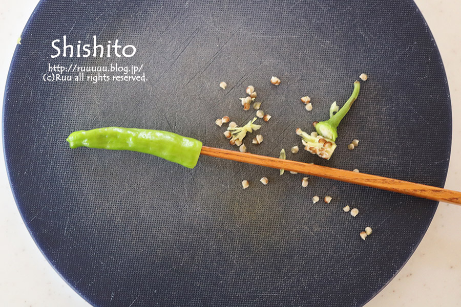 面倒くさがりなもんでシシトウの種を菜箸で取るのは断念。