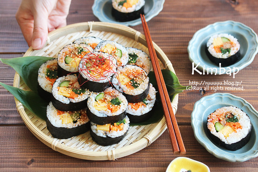 じゃ、今日は韓国風海苔巻き、キンパです。