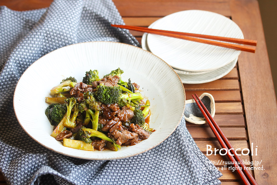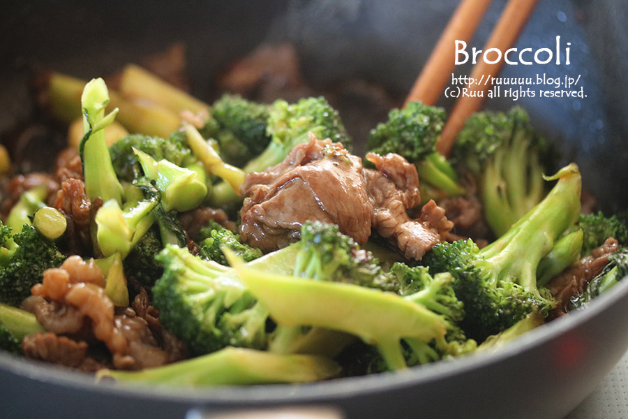 ブロッコリーと牛肉(豚肉でも可)に得意の甘酢ダレをからめただけなんですが、
