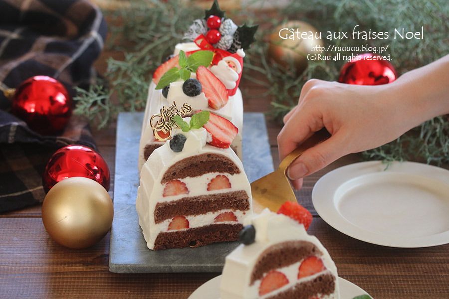クリスマスの定番、ショートケーキをノエル風に仕立ててみました。