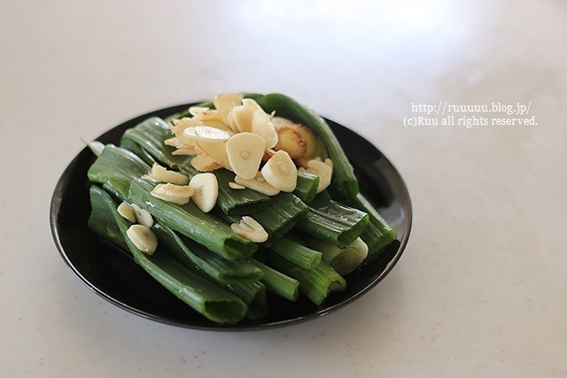 3:焼いている間に、にんにくと生姜をスライスし、ネギは鍋に入る大きさに切る。