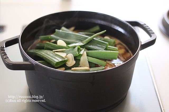 うちはにんにくが3片しかなかったのでスライスしましたが、潰した状態で入れたい場合は5片くらい入れたほうがよろしいかと。(にんにくや生姜は細かく切れば切るほど風味がでます)