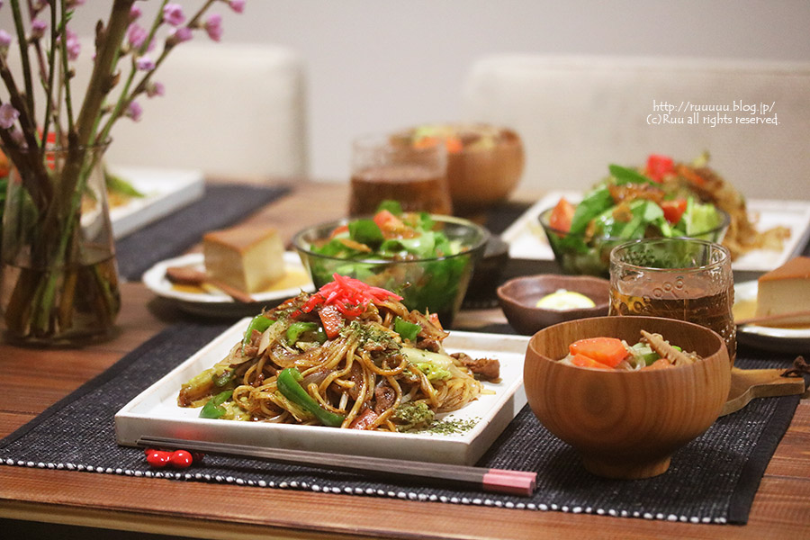 以上、残り物と焼きそばの晩ご飯でしたー。