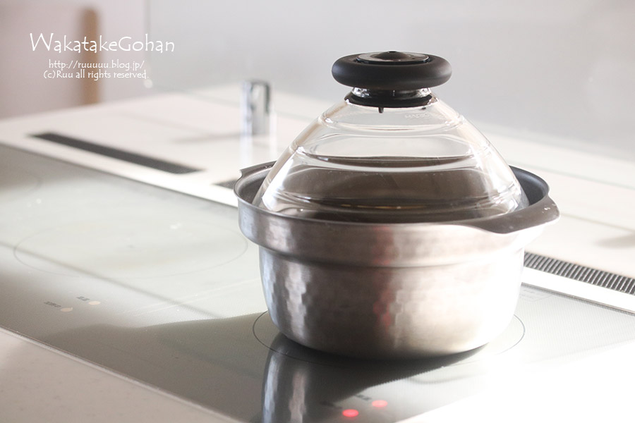 あと、使った鍋はハリオさんのフタがガラスのIH対応ご飯釜雪平。
