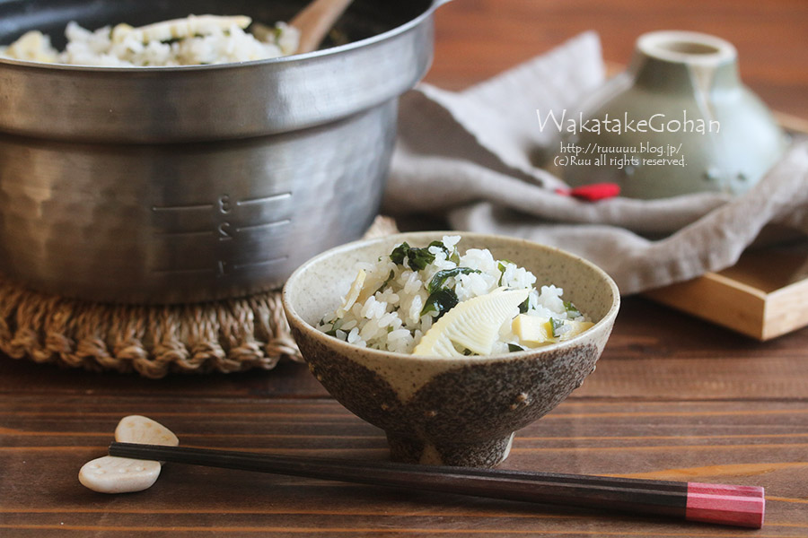 この日の食卓にでてたヤツで、わかめ×たけのこのわかたけご飯。