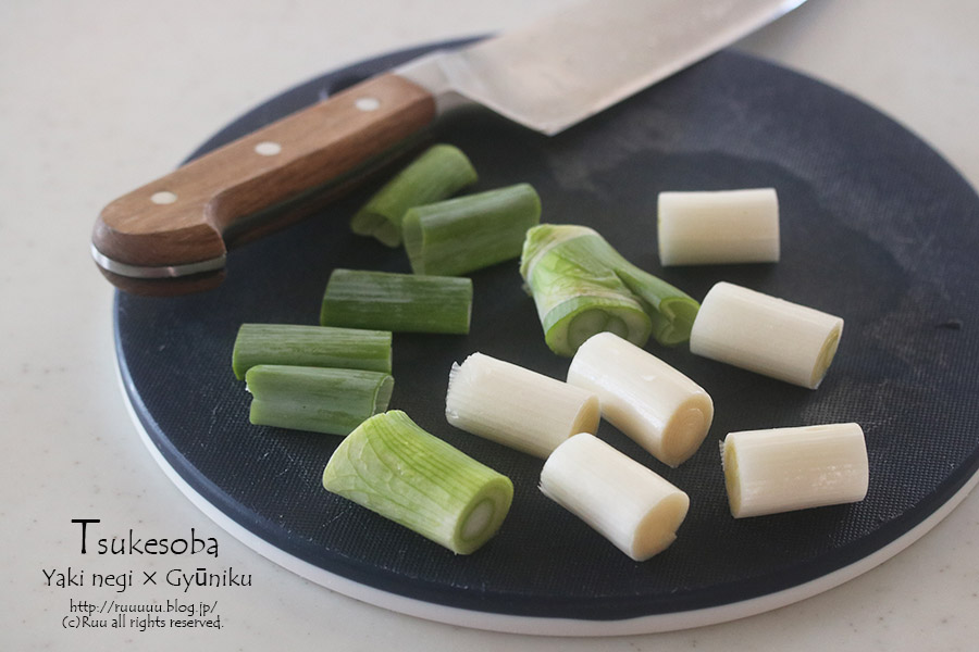 1:長ネギは3~4cm長さのぶつ切りにする。